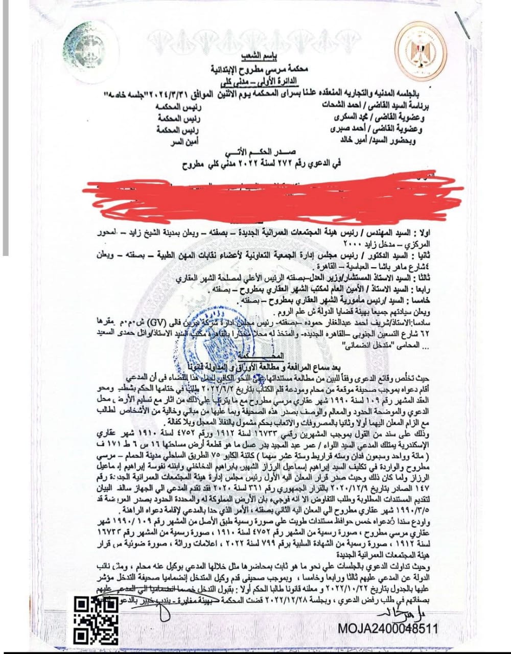 تتداول أوساط عقارية ومجتمعية منذ أيام معلومات مثيرة حول مشروع “وايت ساند” الذي تروج له شركة GV للتطوير العقاري بالكيلو 75 على طريق الإسكندرية مطروح، بعد ظهور مستندات وأحكام تشير إلى أن الأرض المقام عليها المشروع محل نزاع قضائي ممتد منذ سنوات.