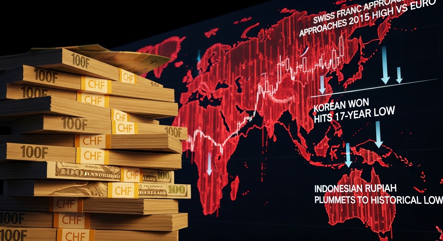 ومع استمرار الإقبال على الملاذات الآمنة، اقترب الفرنك السويسري من أعلى مستوى له أمام اليورو منذ عام 2015، وواصل الدولار الأمريكي الصعود، مما انعكس سلباً على الين الياباني، والوون الكوري الذي هبط لأدنى مستوى في 17 عاماً، والروبية الإندونيسية التي هوت إلى قاع تاريخي.